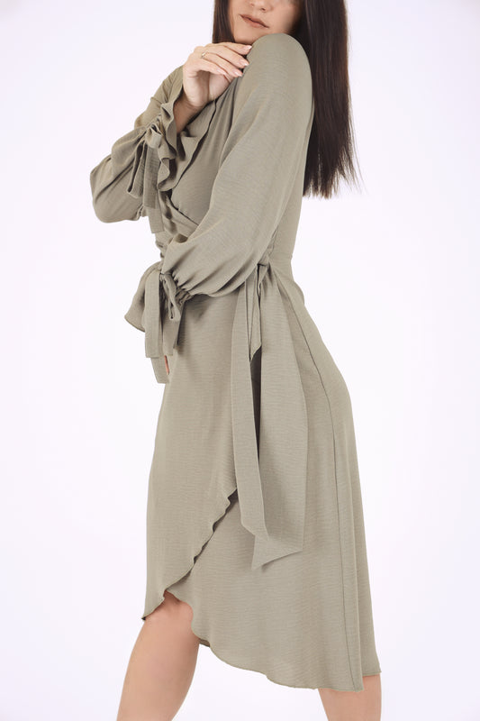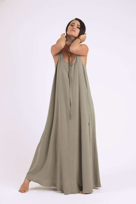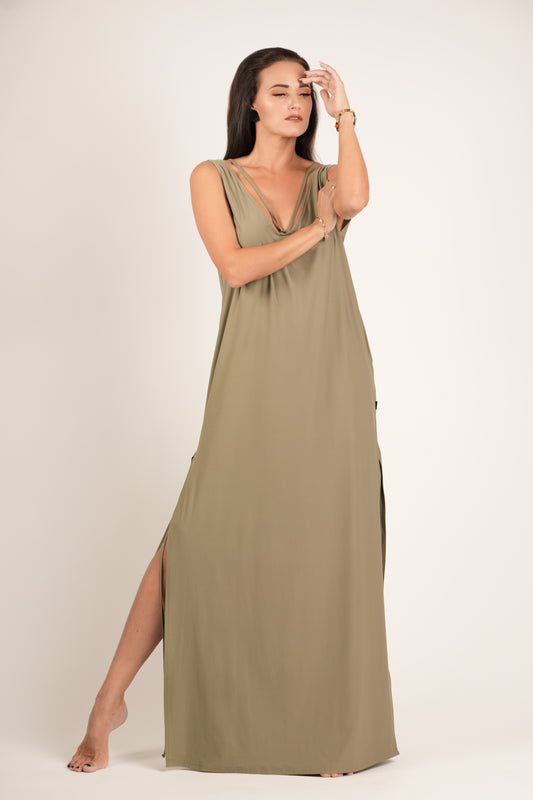Gara kleita ar šķēlumiem, dark haki green