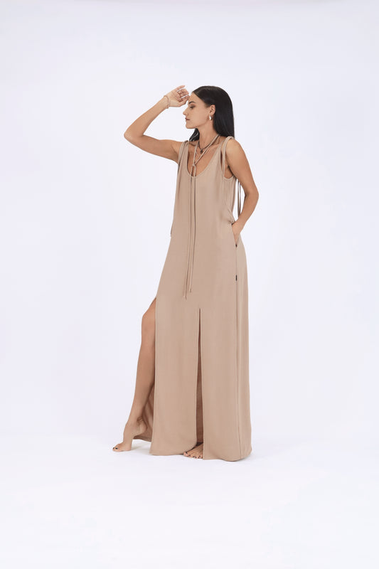 Oversize midi kleita ar sānu kabatām un muguras izgriezumu