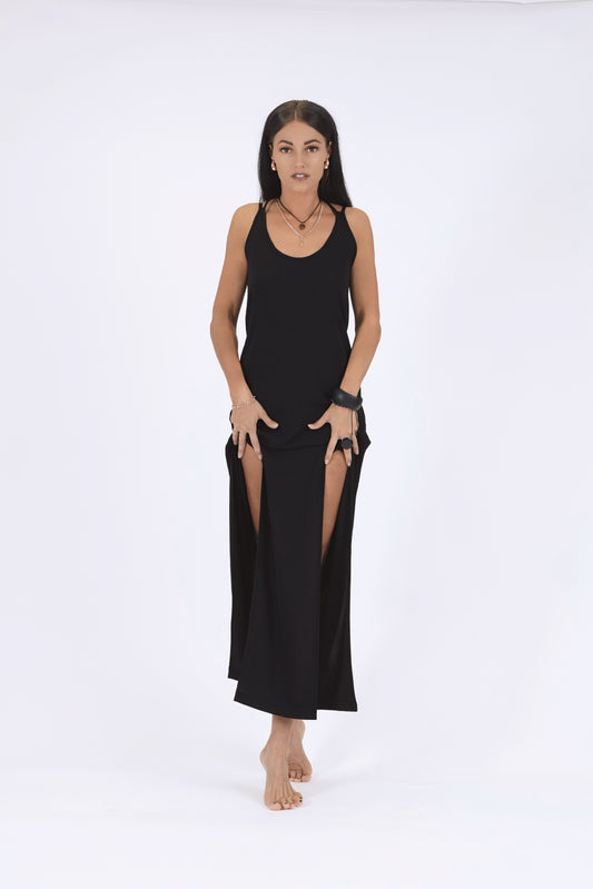 Gara A silueta kleita ar dubultām sienamām lencēm, black