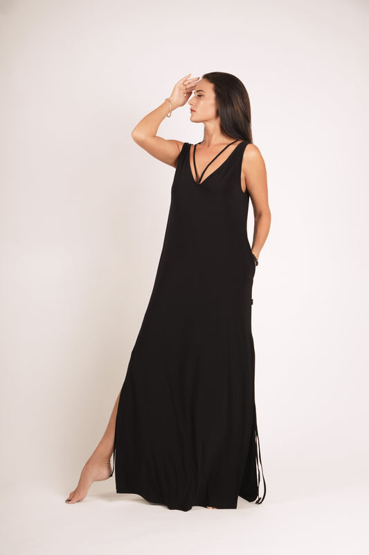 Gara kleita ar šķēlumiem, black