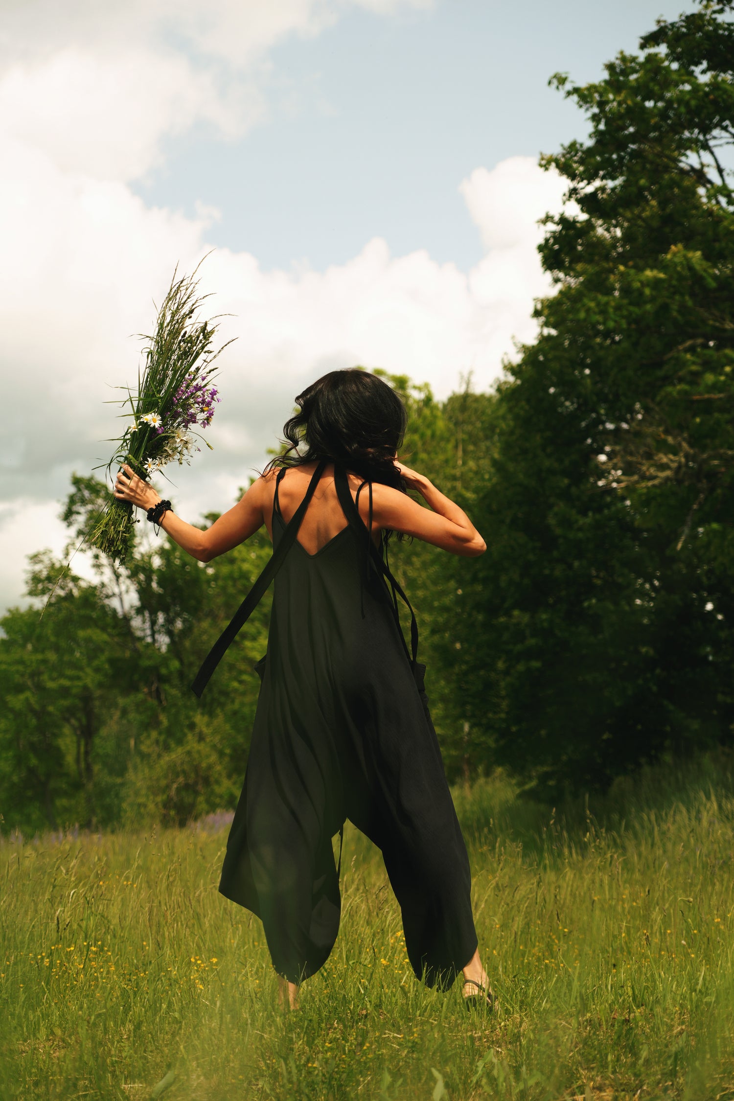 Gara volānkleita ar atsegtu muguras daļu