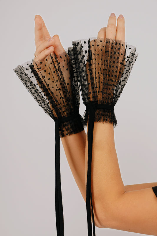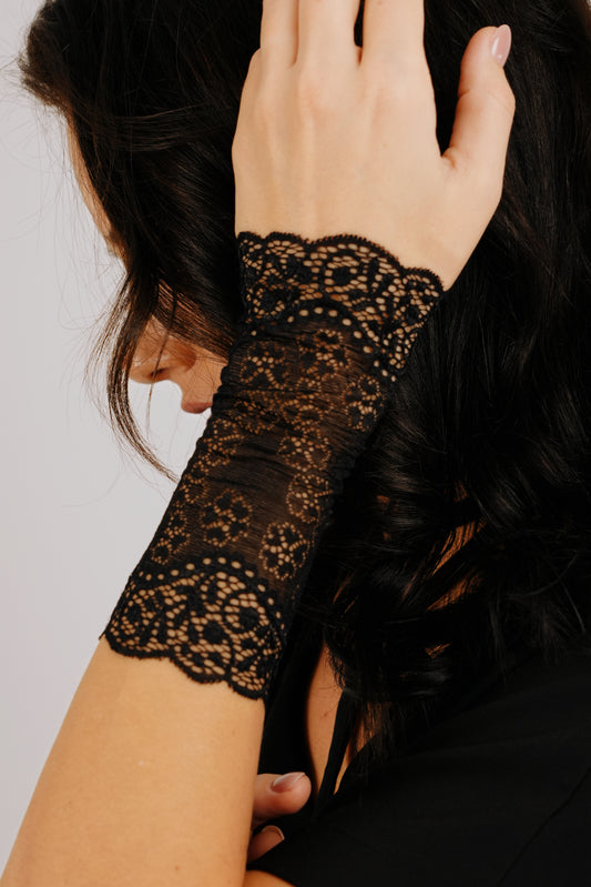Melnas mežģīņu aproces ar dekoratīvu lentu
