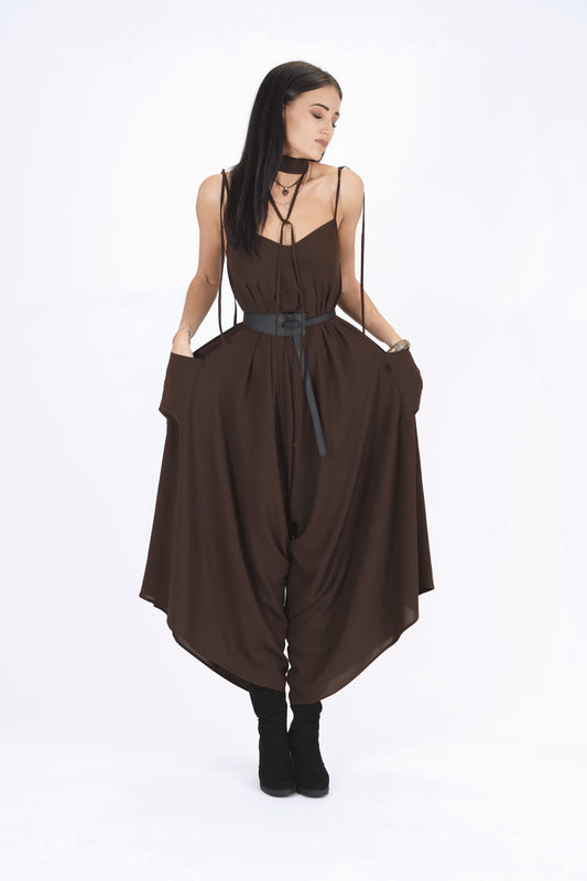 Oversize kombinezons ar kabatām, chocolate brown
