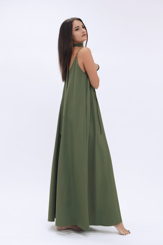 Gara volānkleita ar atsegtu muguras daļu un dekoltē šķēlumu