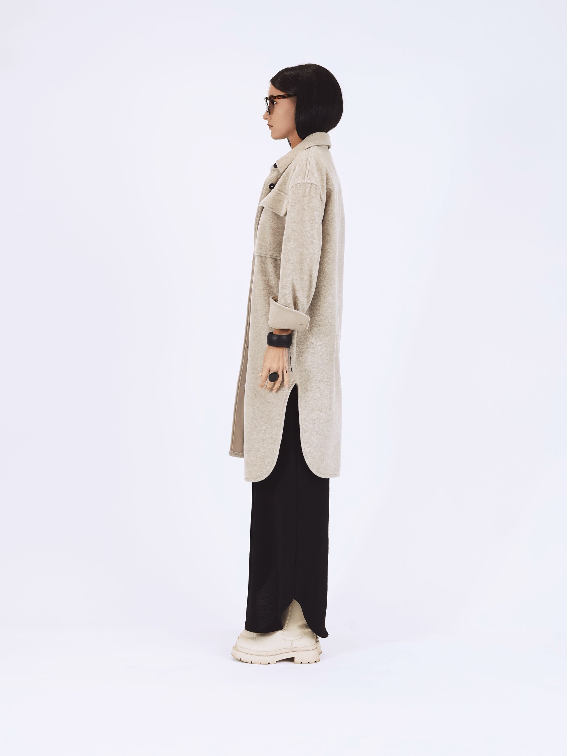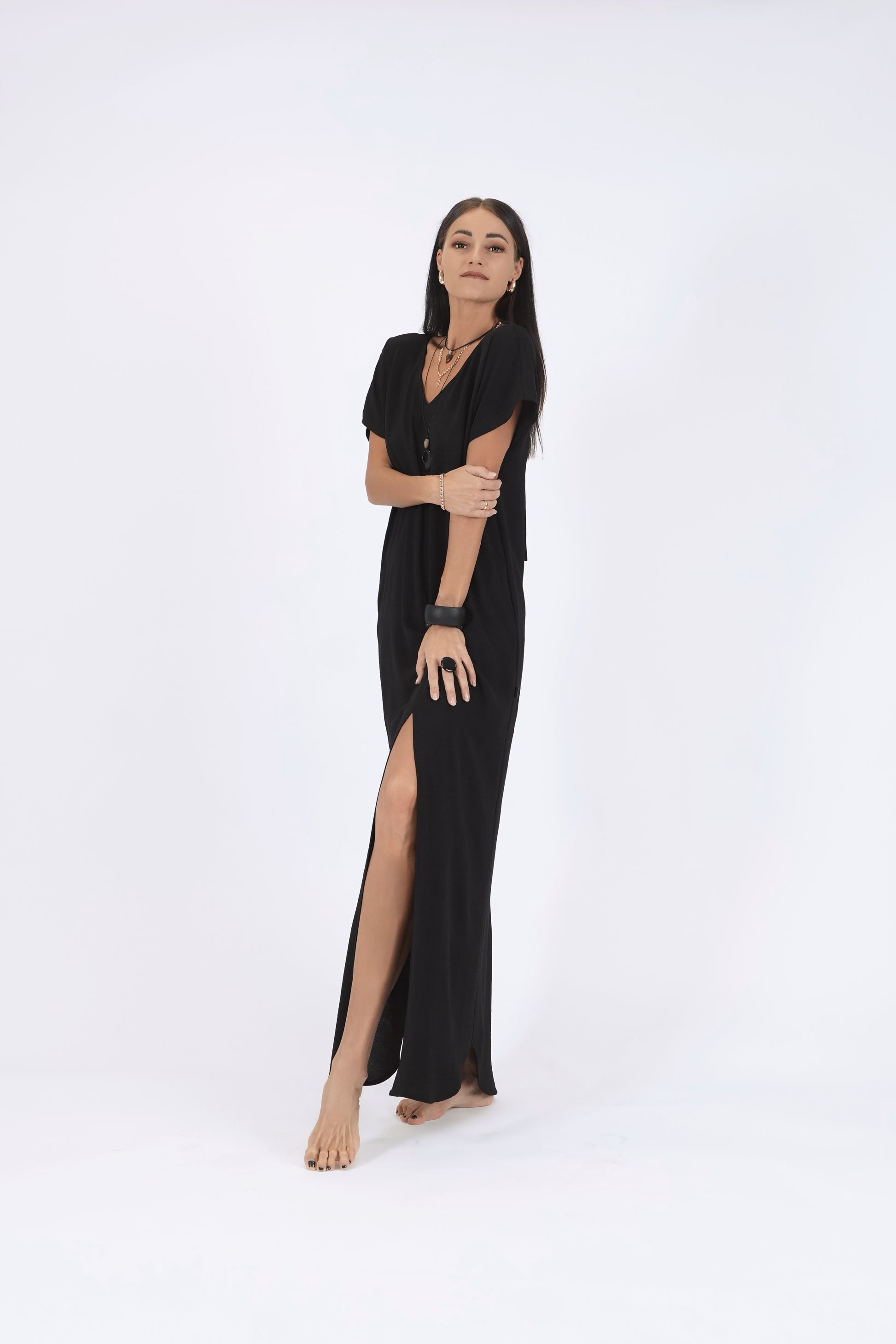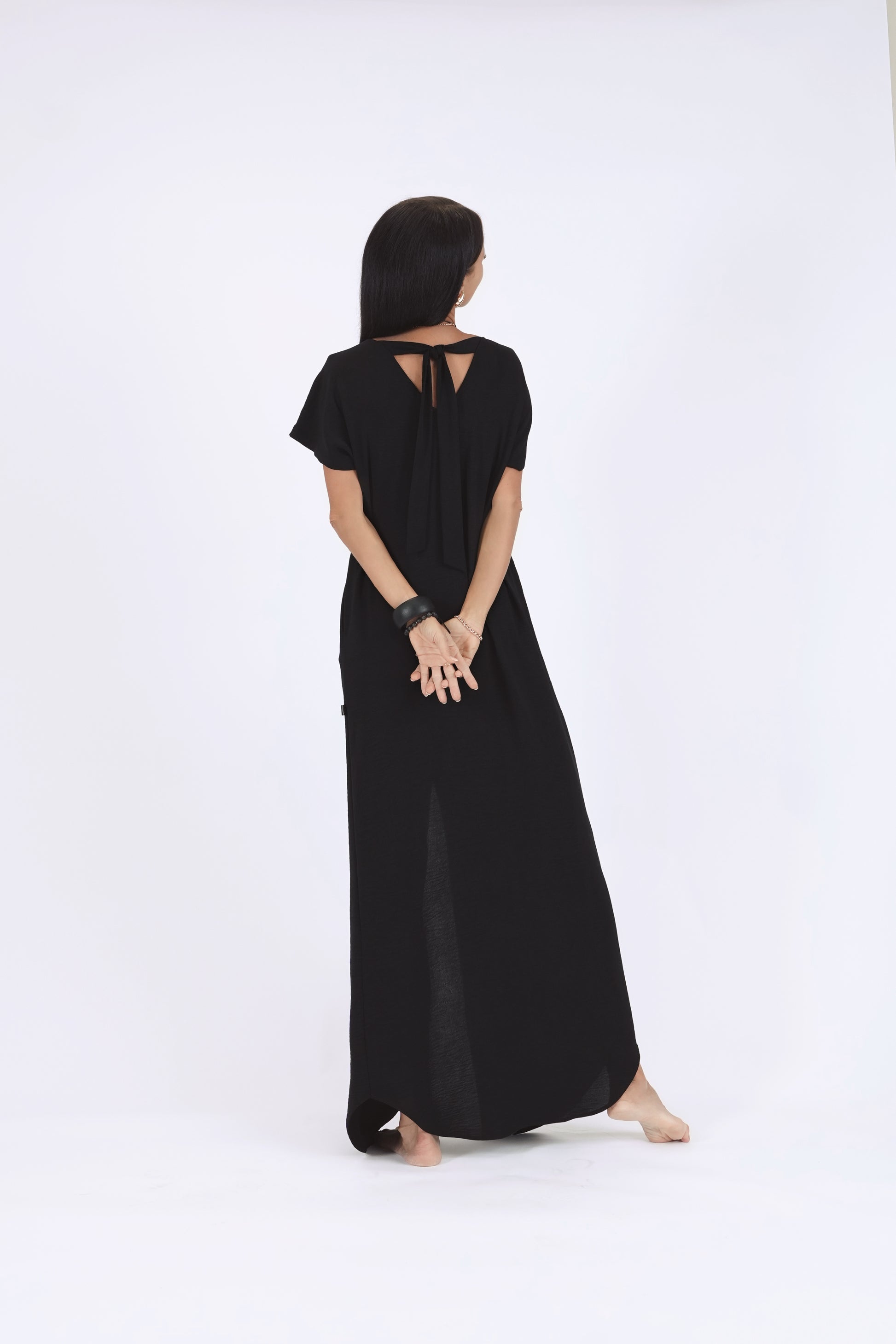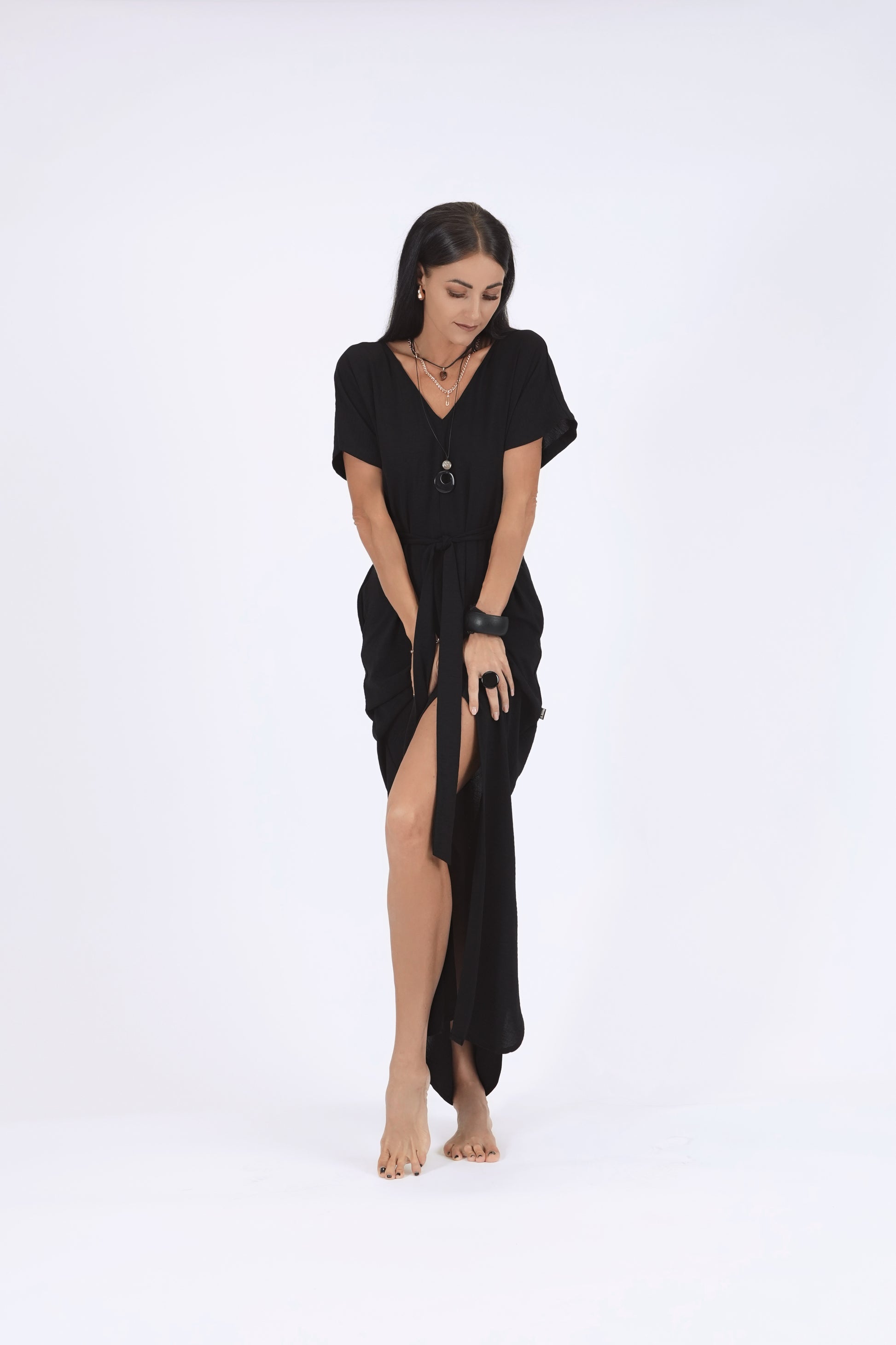 Gara oversize piegriezuma kleita ar šķēlumu kleitas priekšpusē. Kleitai ir taisns piegriezums. Klaitai ir sānu vīles kabatas. Kleitu var sēsāt brīvā kritumā, vai ar jostu skaisti izceļot vidukli. Kleitai ir V veida kakla izgriezums, kas pagarina un slaidina kaklu. Kleitas piedurknes ir brīva piegriezuma, kas piesedz plecu daļu un ir ļoti ērtas. Kleitas lejas malai ir moderni sānu izgriezumi, kas nedaudz atsedz potīti, padarot redzams apavus.