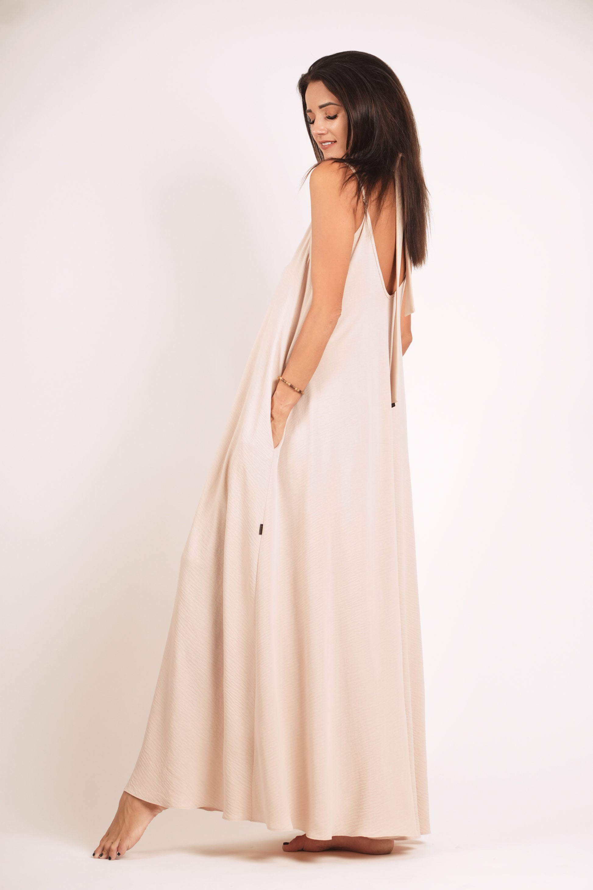 Gara A silueta piegriezuma kleita, sarafāns ar kabatām.