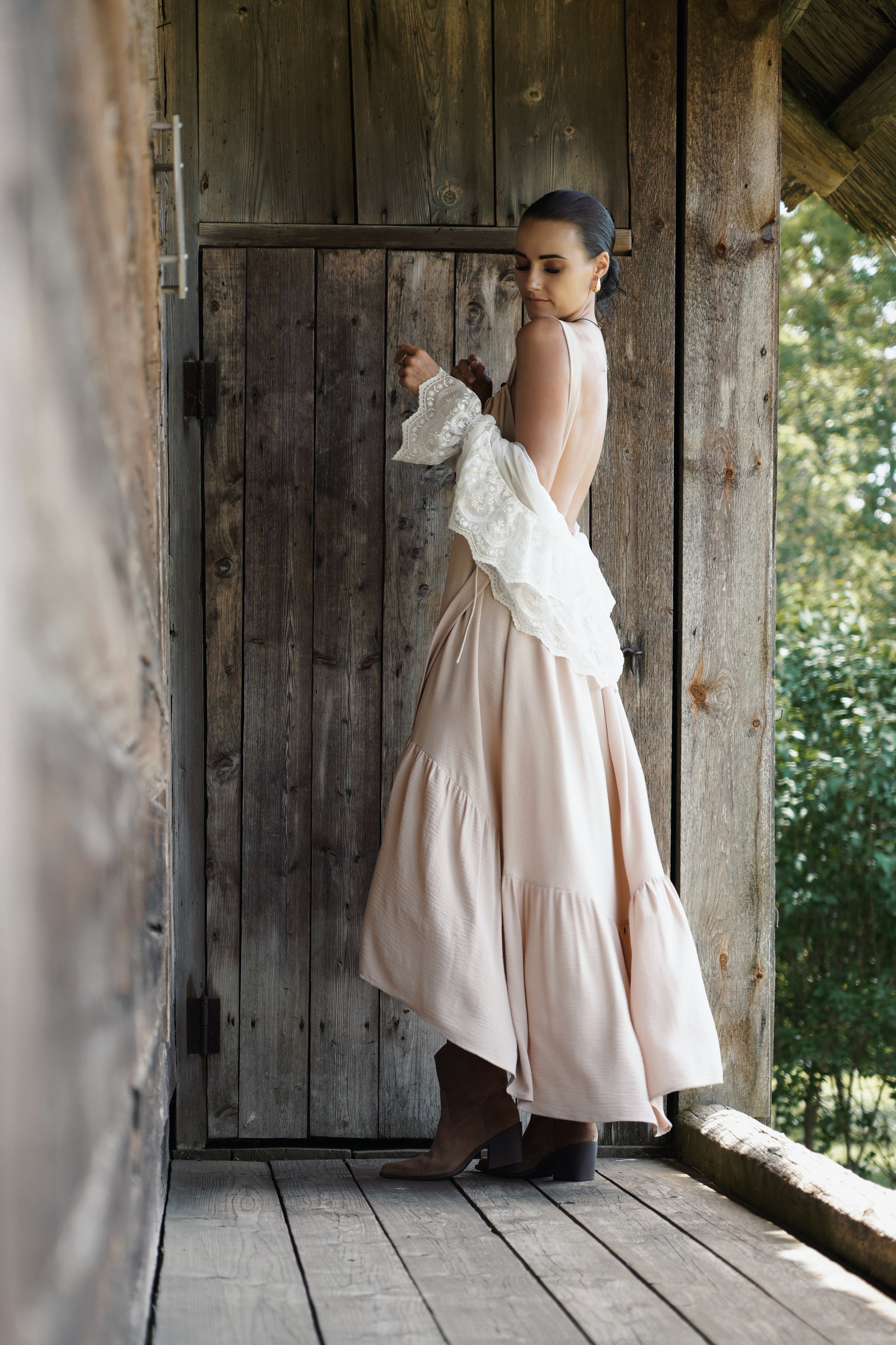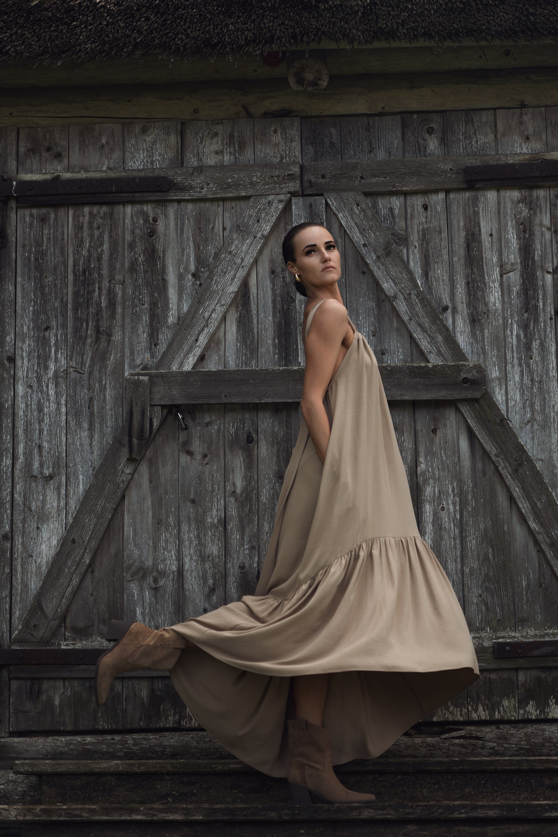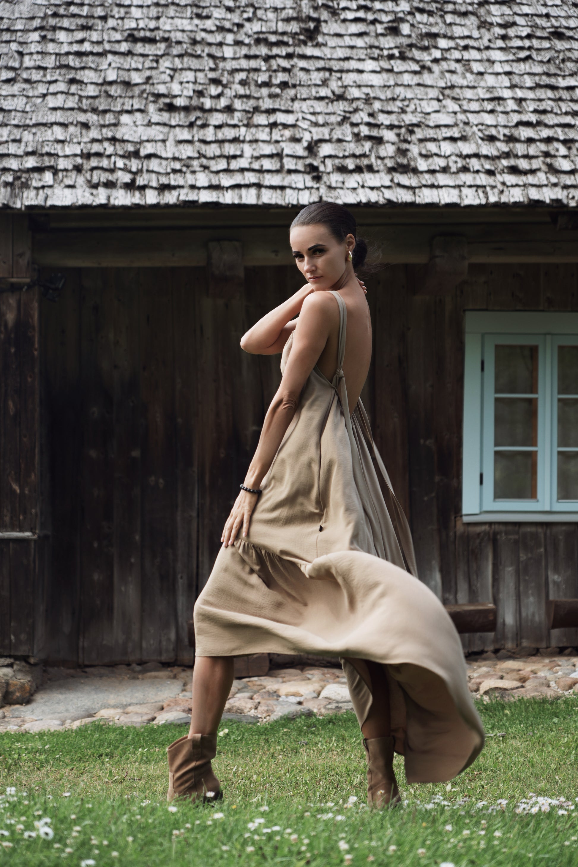 Kleitai ir sienamas lences, kā rezultātā ir iespējams nedaudz regulēt kleitas garumu un muguras izgriezuma dziļumu.