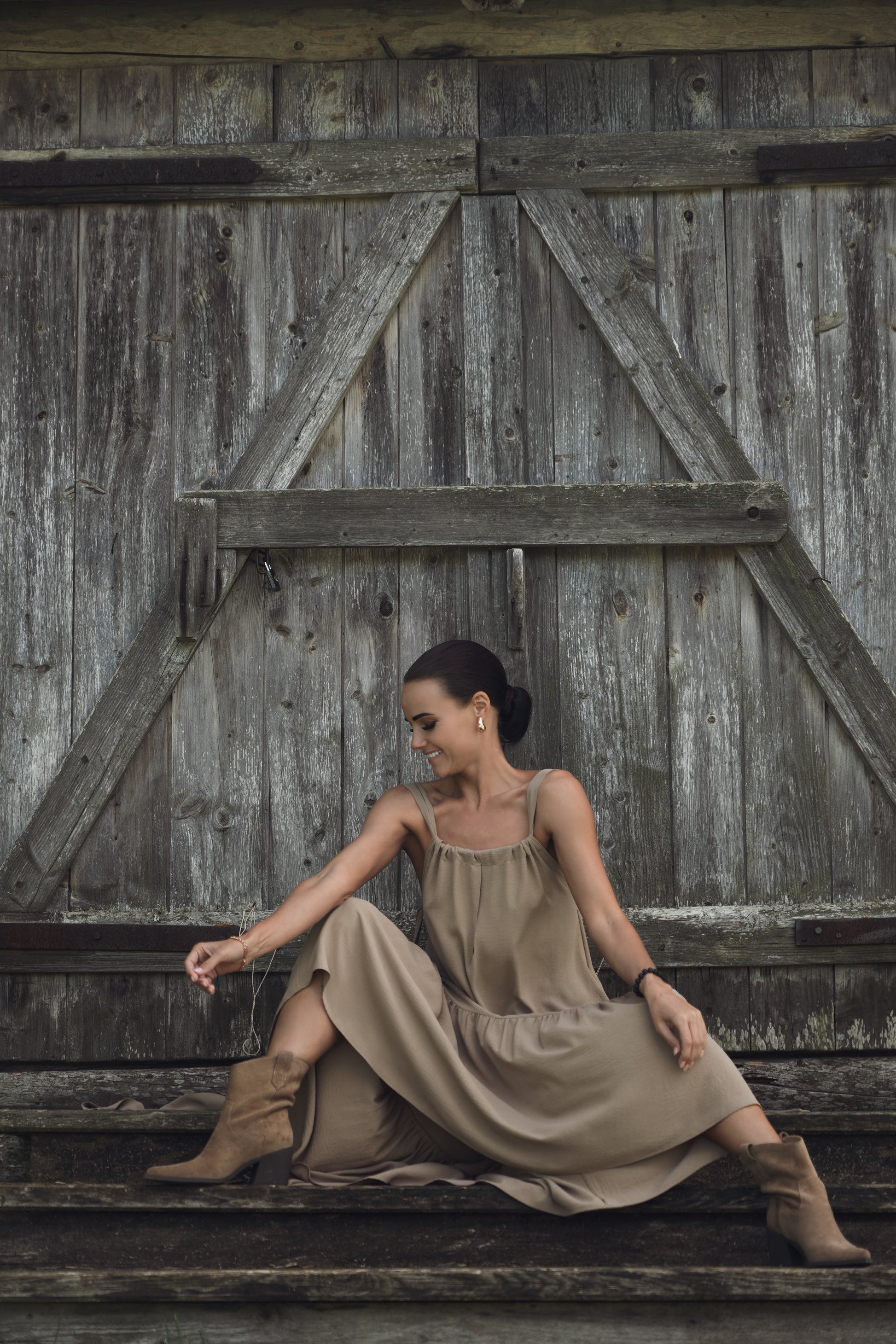 Kleitai ir viens izmērs. Lieliski derēs S-XL izmēram ar auguma garumu 165-180cm. Par kleitas pielāgošanu citam izmēram, droši rakstīt privātu ziņu.