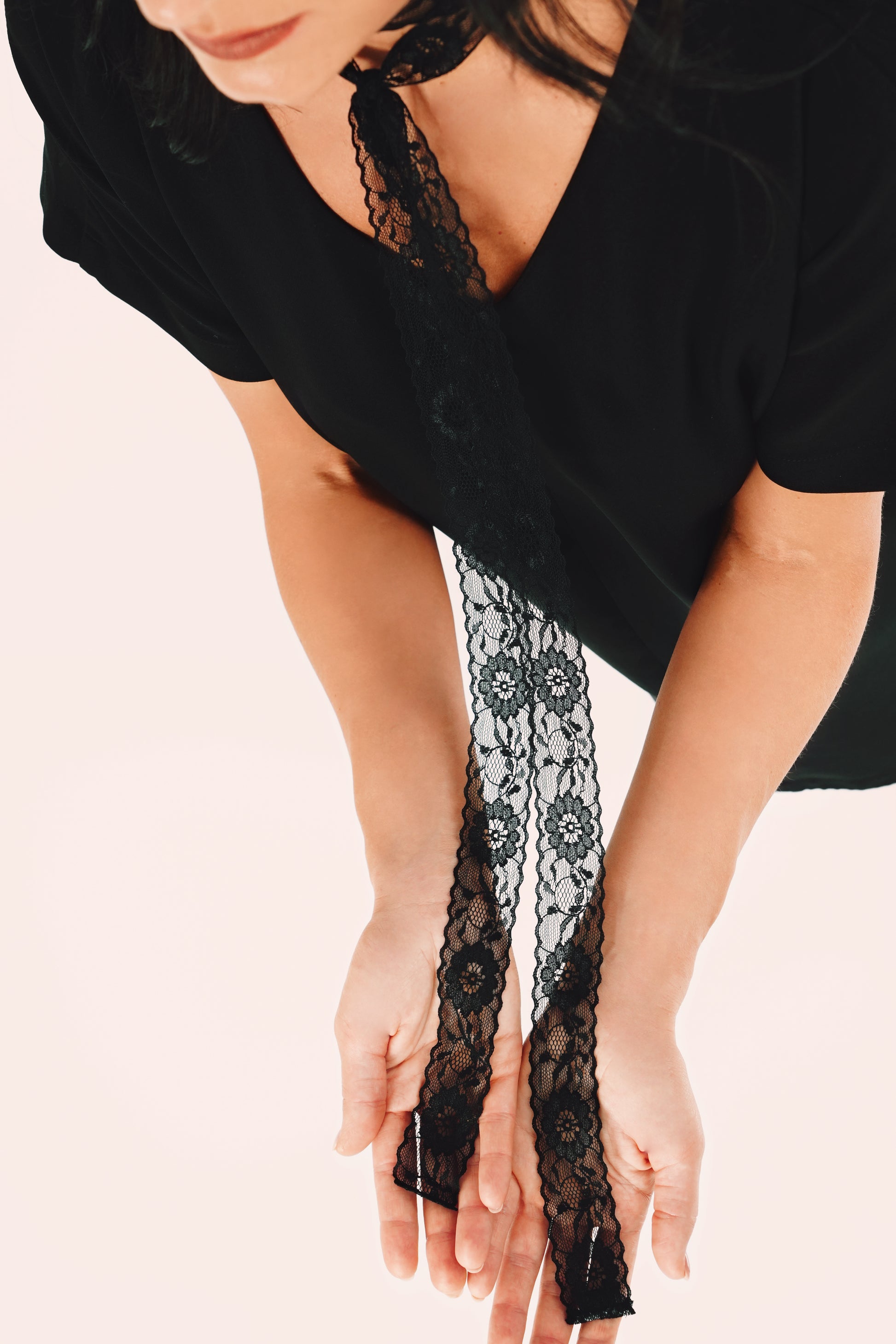 Mežģīņu lentu iespējams nēsāt arī kā dekoratīvu siksu ap vidukli.