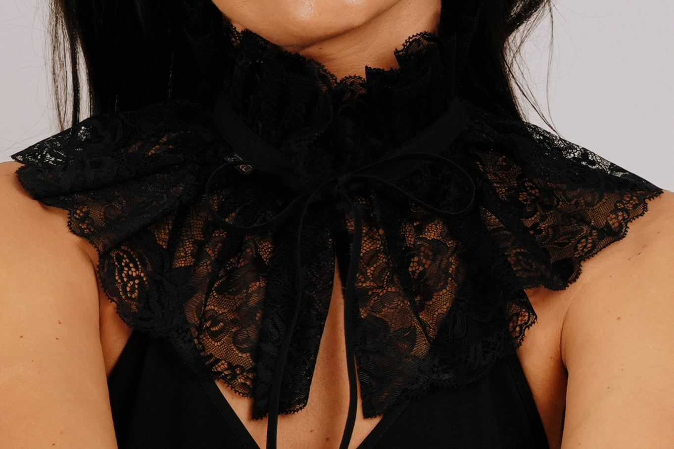 Žabo ir izgatavots no mīkstas, viskozas mežģīnes. Žabo ir ļoti vijīgs. Žabo ir sienas ar garu, smalku lentu. Žabo ir iespējams nēsāt ar savienojuma vietu gan uz priekšu, gan aizmuguri.