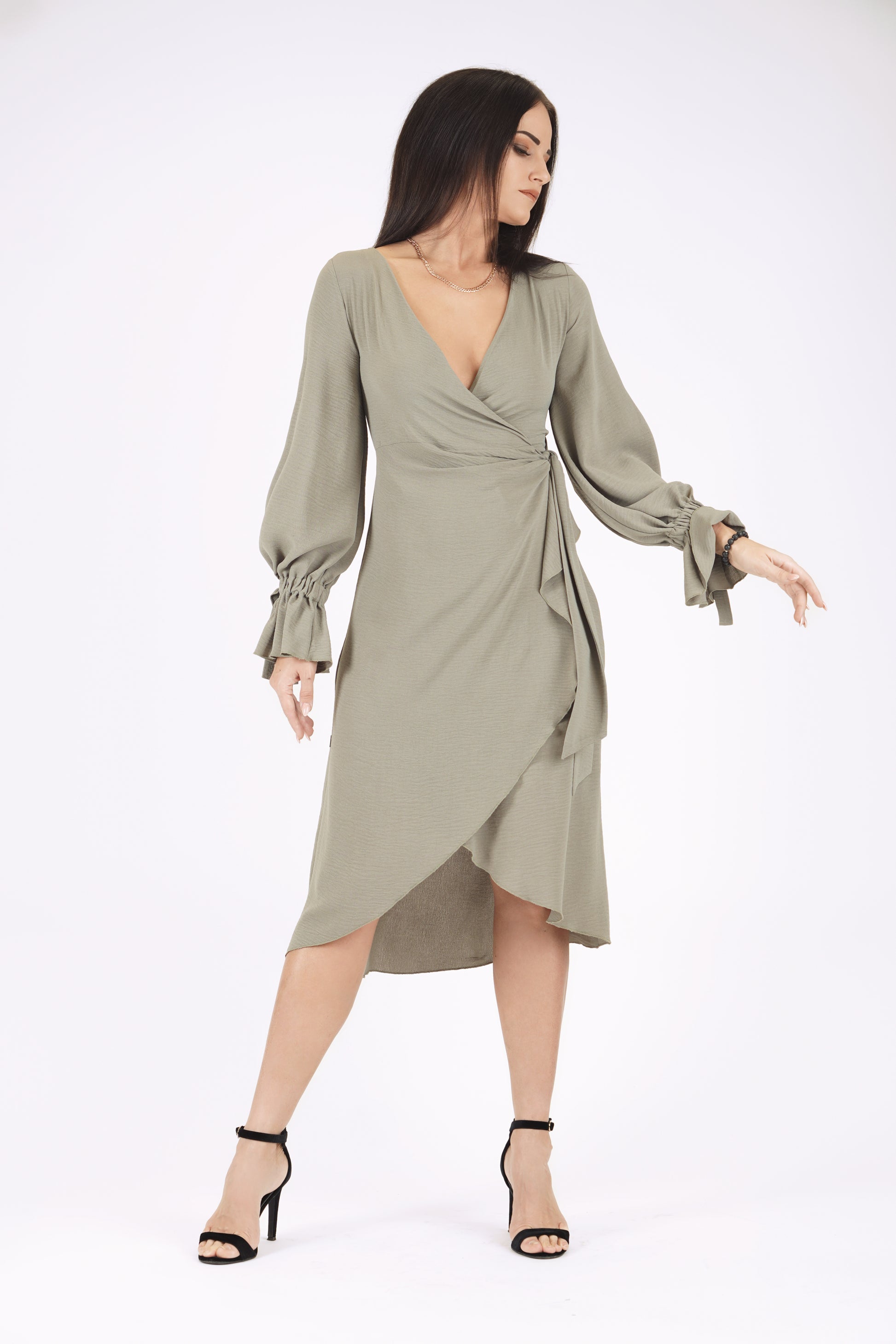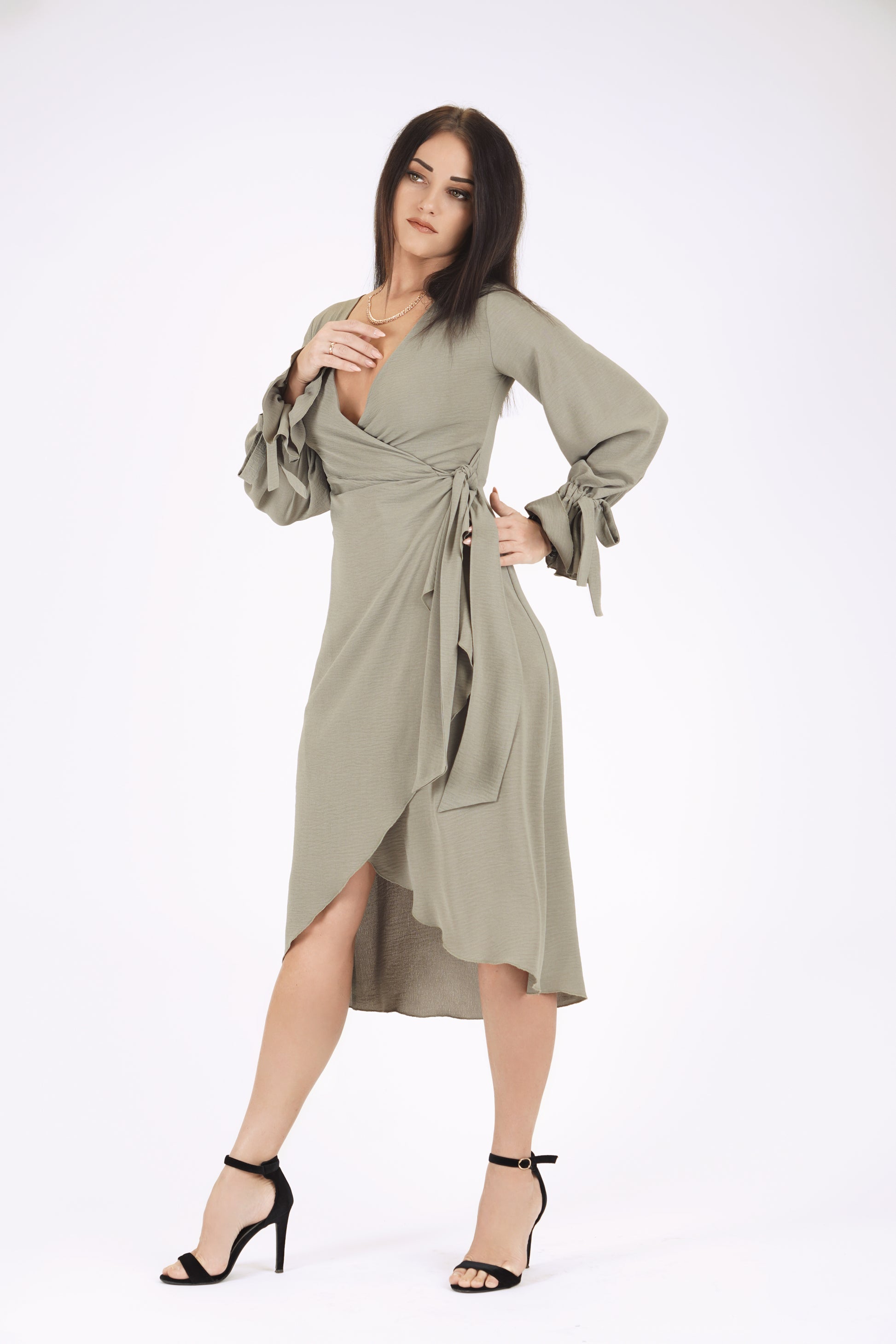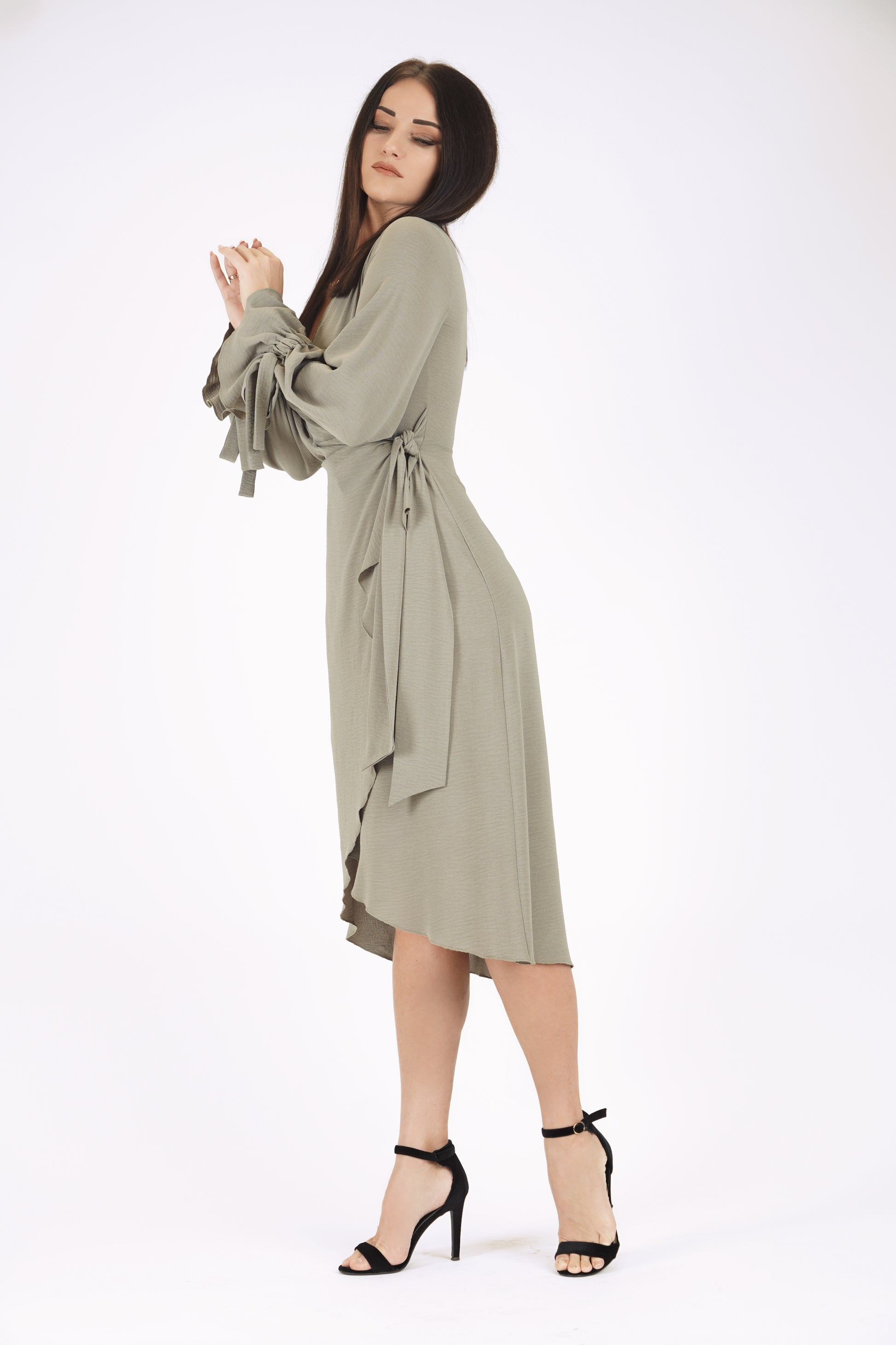 Sasienama kleita ar garām, paplatinātām piedurknēm no neburzīga auduma