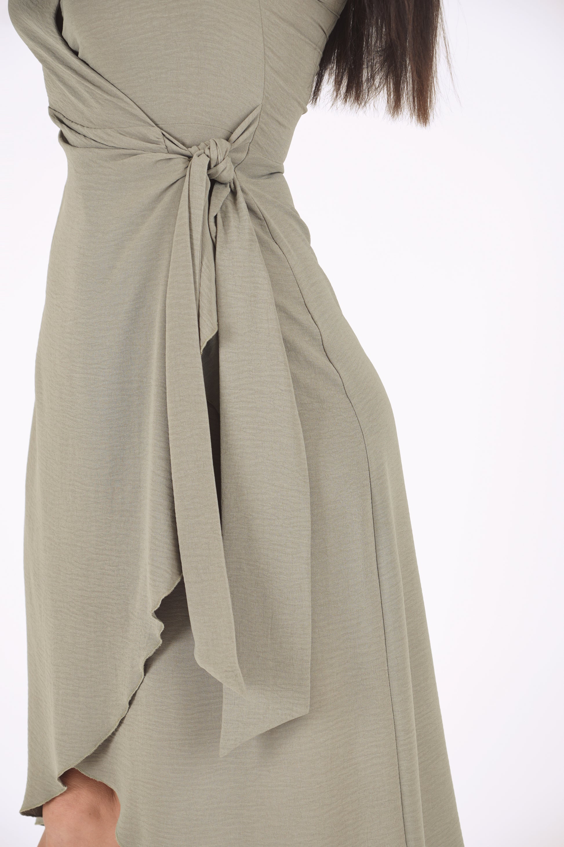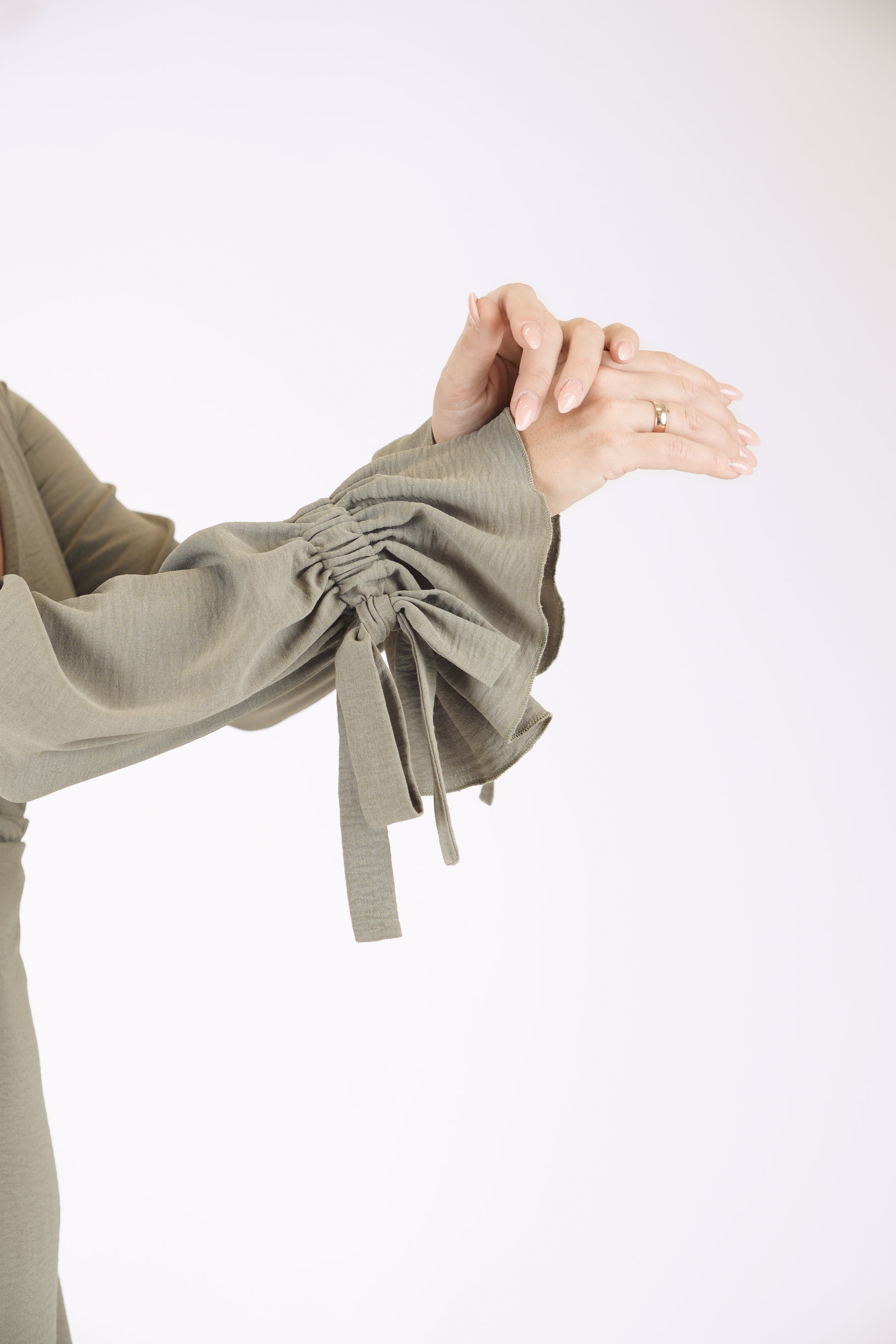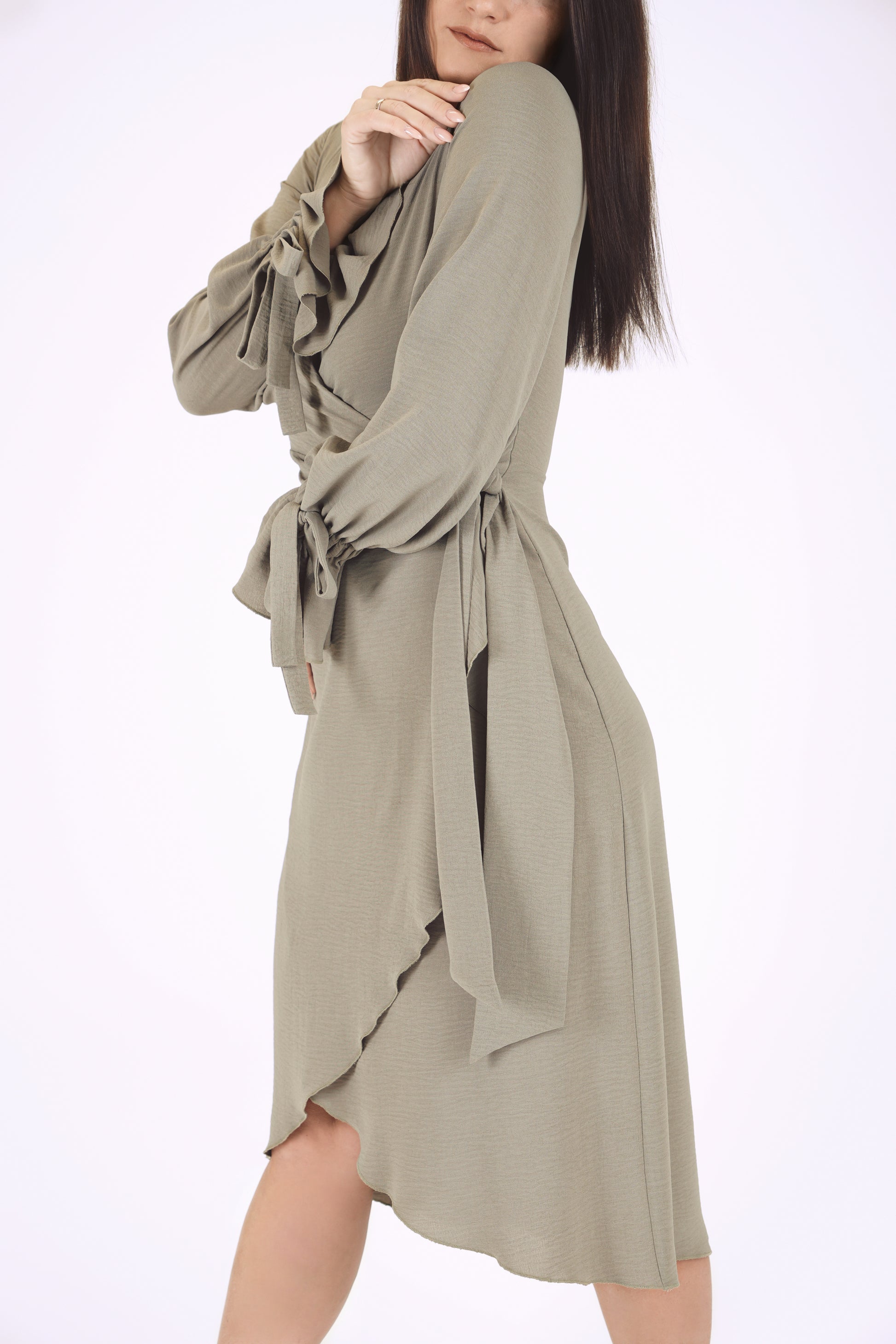 Sasienama kleita ar garām, paplatinātām piedurknēm no neburzīga auduma